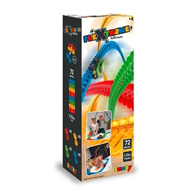 Limitless track design - As soon as the red racing car is set on the exciting track, it starts quickly and cannot be braked even by breathtaking overhead rides and high steep turns. For children over 4 years - The race track can be safely operated by boys and girls aged 4 and over and also promotes basic understanding of physical relationships. The perfect gift PLEASE NOTE - The track extension is just an extension of the starter kit. It does not include a racing car for the track. Only extension rails for the Smoby FleXtreme system Smoby Quality since 1924 - Through constant quality controls, many years of experience, the use of high-quality materials and state-of-the-art production facilities, we ensure safe toys PACKAGE CONTENTS - 72 track parts, each 18 pieces per color, with a total length of up to 1.72 m. The ideal track extension for all FleXtreme sets, Manufacturer: Smoby