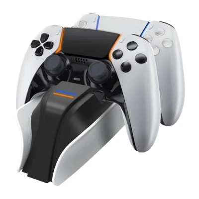 SNAKEBYTE TWIN:CHARGE 5 IS THE PERFECT ADDITION TO THE PLAYSTATION 5. Charge up to two PlayStation 5 controllers simultaneously. You don't need dongles, because charging is done via the Com-Port on the DualSense Controller. THE ELEGANT DESIGN ENClOSES THE CONTROLLER WITH A SEAMLESS FIT and is perfect for storing the controllers when not in use. The docking station is specially designed to match the PS5 console design and the controllers have a perfect fit. CHARGE THE CONTROLLER FASTER and use the integrated LED charge status indicator. During charging, the charge level indicator glows orange and when charging is complete, the light on the charge level indicator changes to blue so never have trouble with empty controllers again. THE USB 2.0 TYPE-C CABLE (1m length) included in the delivery ensures that the controllers can be recharged quickly. Use the TWIN:CHARGE 5 from snakebyte to charge your PlayStation 5 DualSense controller overnight without overcharging. YOUR CONCERN IS IMPORTANT TO US, if you are not satisfied after purchasing the product or your expectations have not been met, snakebyte customer service will do its best to find the best solution in your interest.