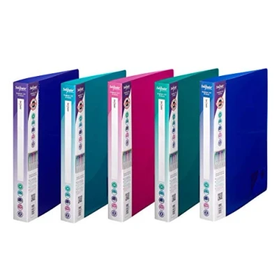 Premium quality 2-Ring 200 sheet capacity RingBinder, made from durable and wipe clean polypropylene, which weighs less and lasts longer than the standard RingBinder, all with high gloss covers for a professional finish Full length wrap-around spine label allows you to personalize each RingBinder, making content organization efficient and hassle-free Additional pocket on inside of front cover is ideal for storing accompanying material and additional loose papers Business card holder integrated into inside pocket, ideal for personalisation whilst adding a professional touch to your RingBinder Free-standing RingBinder ensures you have an organised and hassle-free document retrieval process Unique over-sized design ensures loose documents and page tabs remain in perfect condition