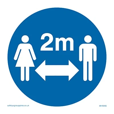 M912 : Keep 2m distance This sign is made from vinyl high tack A stickier sticker. Uses a stronger adhesive to make it more suitable for plastic surfaces like Wheelie Bins or where the sticker might get rubbed. S85 square Sign Text: Social distance symbol