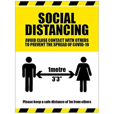 Display important information relating to coronavirus guidance and social distancing requirements on this hard wearing floor graphic Sub surface printed and over laminated in hard wearing, anti-slip polycarbonate film. High tack self-adhesive backing. Please ensure the surface is clean and dry before application. Ideal for displaying throughout the business. Perfect for shops to display clear markers as to safe distances - repeat at 2 metre intervals.