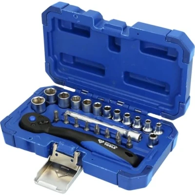 Sturdy transport case All tools are well stored, no rattling Ratchet handles are partly rubberised for a good grip Labelling in the case increases clarity Made from high quality chrome vanadium steel for extra durability