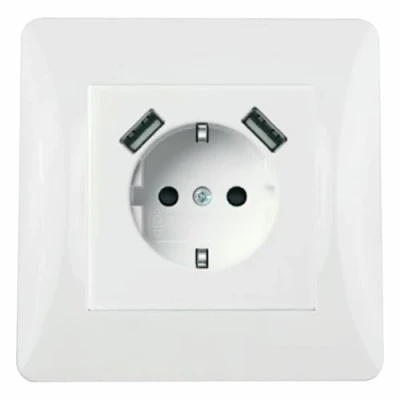 Socket white recessed base with 2 USB ports, ideal for charging devices