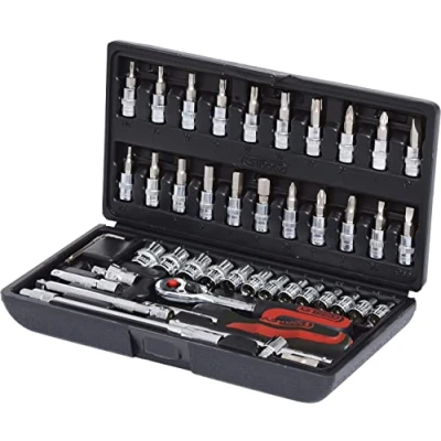 The chrome socket set includes, among other things, a large selection of 1/4 inch hexagonal sockets and 1/4 inch bit sockets (PH, PZ, TX, slot, hexagon socket) and other socket spanner accessories stable and firm connection between nuts, extensions and ratchet firm hold of all individual parts in a sturdy plastic case. FlankTraction profile International products have separate terms, are sold from abroad and may differ from local products, including fit, age ratings, and language of product, labeling or instructions.