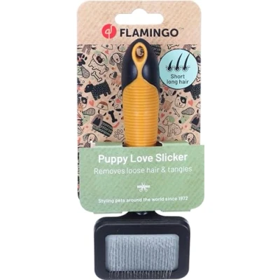 The knots in your puppy's coat give you a hard time? Is hair loss a headache? Ordinary brushes are not enough and complicate the task? Frustration rises… No longer sacrifice quality for comfort. The Flamingo Puppy Card Brush is here to solve all your grooming problems. ✨ Give your puppy a comfortable and easy grooming experience. Order now and enjoy stress-free grooming sessions! 🎉 Get Sales Flexible, finely curved nubs help detangle tangles and remove hair Suitable for puppies with short or long coats The rubber handle ensures a better grip
