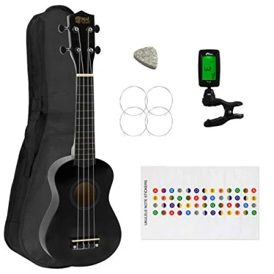 Soprano Ukulele for Beginners in Black with FREE Uke Bag & Tuner