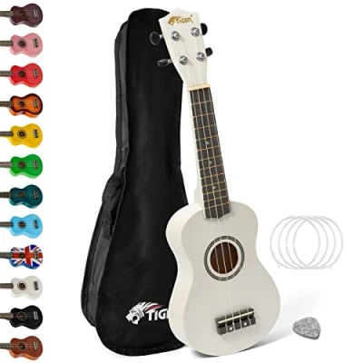 Soprano Ukulele Ukelele for Kids includes Gig Bag, Felt Pick, Spare Strings White TIGER UKE7 WH
