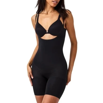 Spanx Women's Power Open Bust Mid Thigh Bodysuit Shapewear, Very Black, L