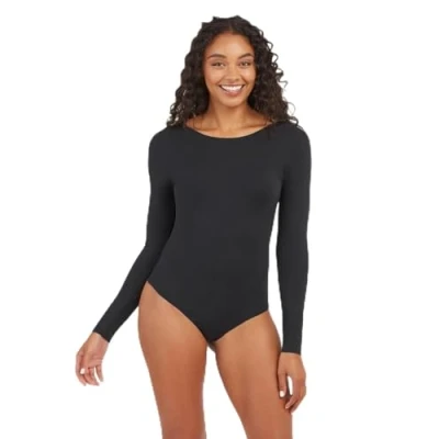 Spanx Women's Scoop Neck Bodysuit t shirt, Classic Black, S