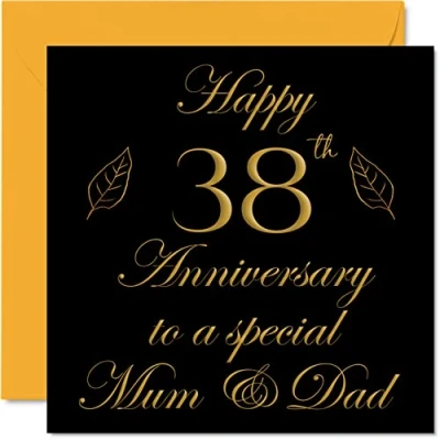 Special 38th Anniversary Card for Dad Mum Parents & Happy 38 Wedding Cards from Son Daughter Family, 145mm x Greeting Thirty Eighth Anniversaries