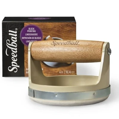 BLOCK PRINTING TOOL – The Speedball Baren is designed to help you create gorgeous prints. This block printing tool measures 4 inches in diameter. FOR THE CLASSROOM OR STUDIO - The Speedball Baren is ideal for students, hobbyists, or professional printmakers SMOOTH SLIDE DESIGN – The face of the baren is covered in nylon which creates an ultra-smooth glide across your paper. CREATES BETTER IMAGE – Using a printmaking baren is much more efficient than using your hands. It evenly distributes pressure creating a better ink image. COMFORT GRIP HANDLE –The baren for block printing has a smooth, wooden handle. The handle is super comfortable and the perfect size for everyone., Manufacturer: Speedball