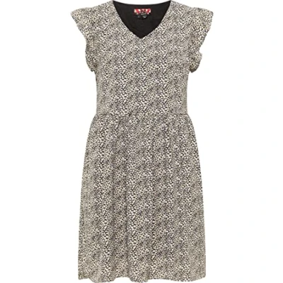 Sleeveless dress All-over cherry print Crew neck with button Drawstring with tie belt at the waist Side pockets