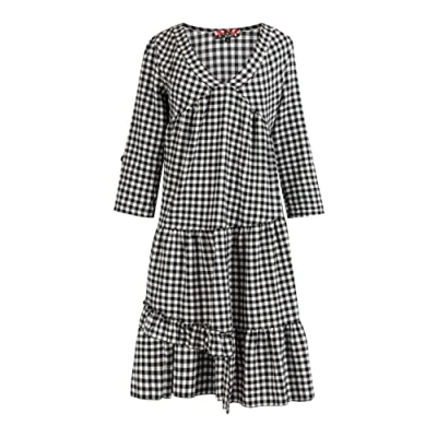 Plaid dress Made from soft cotton blend Asymmetrical valances Button sleeve strap V-neck