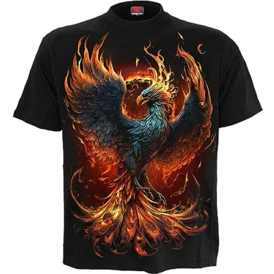 The final embers of life drift aimlessly on the breeze, dancing back towards the body of a fallen phoenix; a great warrior of the skies. As they land within her feathers, they reignite with a fury and potency that lights up the heavens and brings life rushing back into her being. Wings unfold, splintering sparks as she rises from the ashes below. T-Shirt Black is made of Top Quality 100% Cotton, Jersey using skin friendly, Azo-free, Reactive dyes. Established since 1990, Spiral has been consistently rolling out cool merchandise for the Gothic and Heavy Metal markets. Spiral is not just a brand …it's an ATTITUDE! Where 'Art meets Fashion', Spiral artwork covers a range of themes from tribal, gothic, horror, fantasy and fetish to the more cute and cuddly along with Spiral's own take on various TV and Film characters, all screen printed to last. Just one of the unique from a huge range of Alternative Fashion products from Spiral!