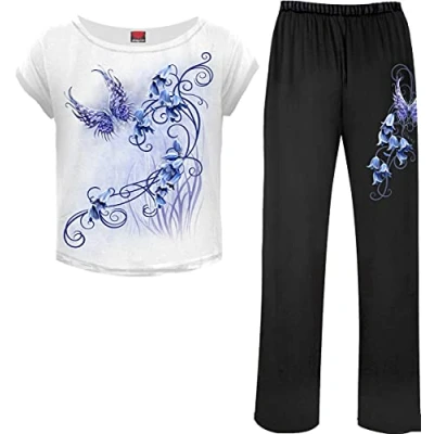Spiral Bluebell Fairy 4Pc Gothic Pyjama Set L Black,