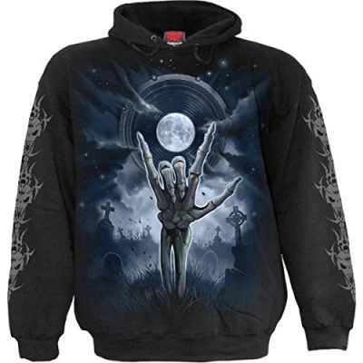 Back from beyond the grave, this de-composer has an axe to grind and another to shred. The amps are set to eleven while this dead guy is shunning Heaven, because everybody knows that the dude downstairs with the pointy tail has all the best tunes. Just one of the unique from a huge range of Alternative Fashion products from Spiral! Hoody Black is made of Top Quality 100% Cotton, Fleece using skin friendly, Azo-free, Reactive dyes. Established since 1990, Spiral has been consistently rolling out cool merchandise for the Gothic and Heavy Metal markets. Spiral is not just a brand …it's an ATTITUDE! Where 'Art meets Fashion', Spiral artwork covers a range of themes from tribal, gothic, horror, fantasy and fetish to the more cute and cuddly along with Spiral's own take on various TV and Film characters, all screen printed to last.