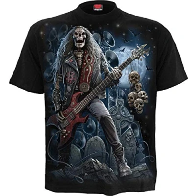 Back from beyond the grave, this de-composer has an axe to grind and another to shred. The amps are set to eleven while this dead guy is shunning Heaven, because everybody knows that the dude downstairs with the pointy tail has all the best tunes. Just one of the unique from a huge range of Alternative Fashion products from Spiral! T-Shirt Black is made of Top Quality 100% Cotton, Jersey using skin friendly, Azo-free, Reactive dyes. Established since 1990, Spiral has been consistently rolling out cool merchandise for the Gothic and Heavy Metal markets. Spiral is not just a brand …it's an ATTITUDE! Where 'Art meets Fashion', Spiral artwork covers a range of themes from tribal, gothic, horror, fantasy and fetish to the more cute and cuddly along with Spiral's own take on various TV and Film characters, all screen printed to last.