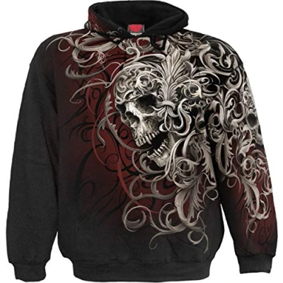 Allover bio-mechanical design with an aggressive black metal twist. A fusion of organic, twisting bone and robotic wiring – this suit of armour is hewn from Hellfire for the darkest of warrior souls. Just one of the unique 'Hoodies' from a huge range of Alternative Fashion products from Spiral! Allover Hoody Black is made of Top Quality 100% Cotton, Fleece using skin friendly, Azo-free, Reactive dyes. Established since 1990, Spiral has been consistently rolling out cool merchandise for the Gothic and Heavy Metal markets. Spiral is not just a brand …it's an ATTITUDE! Where 'Art meets Fashion', Spiral artwork covers a range of themes from tribal, gothic, horror, fantasy and fetish to the more cute and cuddly along with Spiral's own take on various TV and Film characters, all screen printed to last.