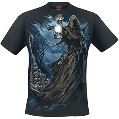 As above, so below the murky waters of a tideless lake that carries the dead to their final resting place. The Ferryman, cursed to give safe passage to those whose loved ones pay for his services, silently moves through the wake his stern forms across the bleak surface. His duty is without end, alas our lives are not so fortunate. T-Shirt Black is made of Top Quality 100% Cotton, Jersey using skin friendly, Azo-free, Reactive dyes. Established since 1990, Spiral has been consistently rolling out cool merchandise for the Gothic and Heavy Metal markets. Spiral is not just a brand …it's an ATTITUDE! Where 'Art meets Fashion', Spiral artwork covers a range of themes from tribal, gothic, horror, fantasy and fetish to the more cute and cuddly along with Spiral's own take on various TV and Film characters, all screen printed to last. Just one of the unique from a huge range of Alternative Fashion products from Spiral!