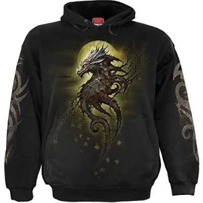 Born of the ancient earth, bursting forth from the blackened, fertile soil that eons of time has painstakingly formed. The twisting, serpentine form of a dragon, seen through the sunlit shards of a peaceful forest glade. A beast made of branches, splinters, and poisonous ivy, with outstretched wings that interrupt the sun’s path just before it hits the forest floor. Hoody Black is made of Top Quality 100% Cotton, Fleece using skin friendly, Azo-free, Reactive dyes. Established since 1990, Spiral has been consistently rolling out cool merchandise for the Gothic and Heavy Metal markets. Spiral is not just a brand …it's an ATTITUDE! Where 'Art meets Fashion', Spiral artwork covers a range of themes from tribal, gothic, horror, fantasy and fetish to the more cute and cuddly along with Spiral's own take on various TV and Film characters, all screen printed to last. Just one of the unique from a huge range of Alternative Fashion products from Spiral!