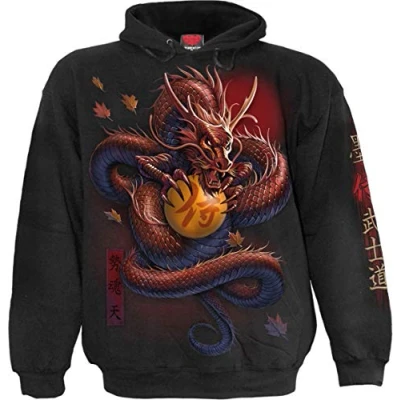Wear your courage, honour and respect - the way of the dragon - like a suit of armour with this elegantly atmospheric design. Emblazoned with the twisting form of Shenlong, the bringer of storms who clutches a mystical pearl in his talons, this is a design as sharp as the blade of a samurai sword. Where 'Art meets Fashion', Spiral artwork covers a range of themes from tribal, gothic, horror, fantasy and fetish to the more cute and cuddly along with Spiral's own take on various TV and Film characters, all screen printed to last. Just one of the unique from a huge range of Alternative Fashion products from Spiral! Hoody Black is made of Top Quality 100% Cotton, Fleece using skin friendly, Azo-free, Reactive dyes. Established since 1990, Spiral has been consistently rolling out cool merchandise for the Gothic and Heavy Metal markets. Spiral is not just a brand …it's an ATTITUDE!