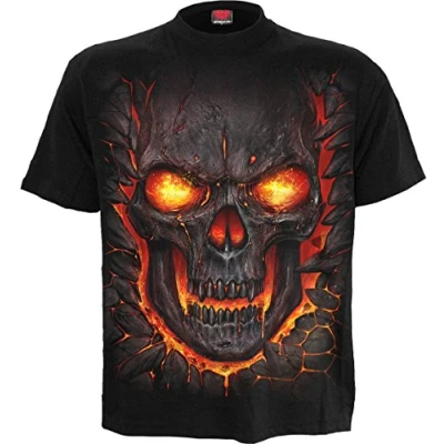 Etched into the melting volcanic rock within the earth’s core, the grotesque mask of death smiles grimly with eyes of molten lava. A skull and tribal back print sets off this eery design perfectly. T-Shirt Black is made of Top Quality 100% Cotton, Jersey using skin friendly, Azo-free, Reactive dyes. Established since 1990, Spiral has been consistently rolling out cool merchandise for the Gothic and Heavy Metal markets. Spiral is not just a brand …it's an ATTITUDE! Where 'Art meets Fashion', Spiral artwork covers a range of themes from tribal, gothic, horror, fantasy and fetish to the more cute and cuddly along with Spiral's own take on various TV and Film characters, all screen printed to last. Just one of the unique 'T-Shirts' from a huge range of Alternative Fashion products from Spiral!