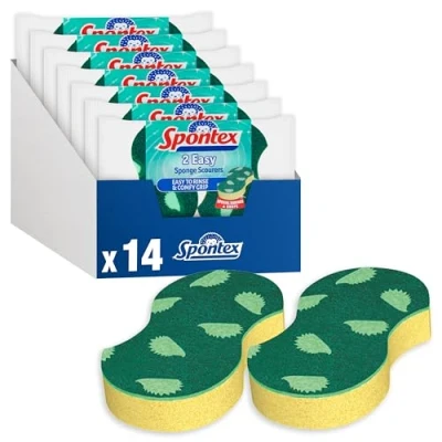 Efficient sponge scourers. More hygienic easy rinse surface. Fresh lemon scent. Easy grip shape. Versatile.