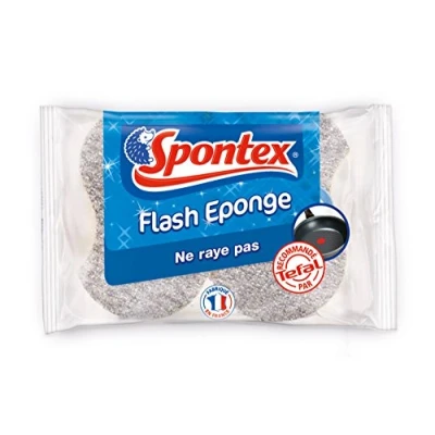 Non-scratching: Thanks to the flexible plastic fibres coated with aluminium, Flash Sponge does not scratch and effectively cleans all surfaces, even the most delicate ones such as hobs and pans. Easy to rinse: it clogs up less quickly and stays clean for longer RECOMMENDED BY TEFAL (pans, sauteers, pans...) VEGETAL SPONGE PART: The sponge part is made from cotton, wood pulp and linen Washable: Machine washable or dishwasher safe at 70 °C