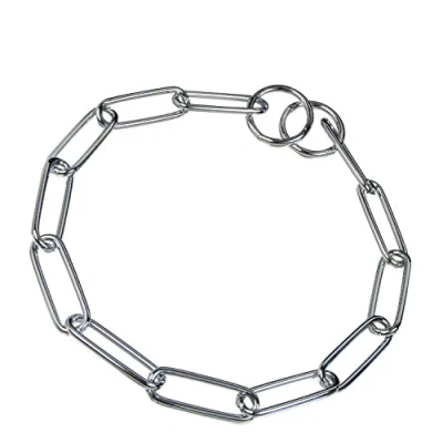 Chain necklace with long links Suitable for dogs with long thin coat Termination double sealed rings Chrome steel For dogs up to 50 kg