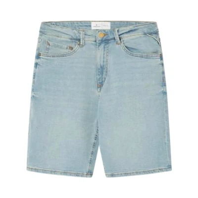 Regular fit Bermuda shorts in stretch denim Design with turn-up hems and a metal stud with logo on the coin pocket Zip fly With 5 pockets