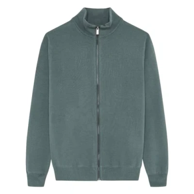 Grey milano knit zip-up cardigan with high neck, in 100 percent cotton Reconsider collection
