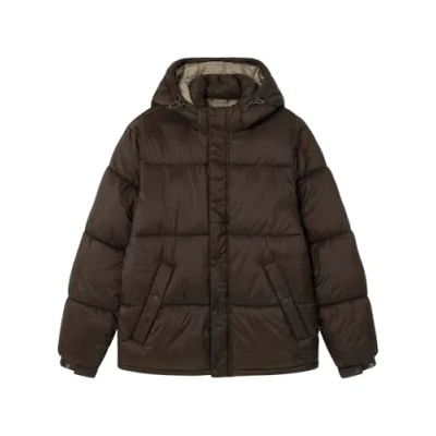 Springfield Men's Chaqueta Ripstop Abullonada Con Capucha Desmontable Jacket, Brown print, S