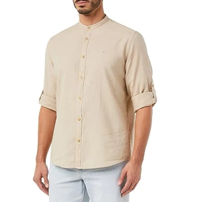 Regular fit long-sleeved shirt in linen/cotton blend Mandarin collar and roll-up sleeves Project RECONSIDER