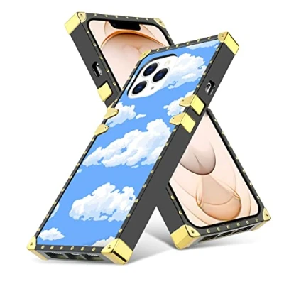 Square Edge Phone Case iPhone 13 Pro Max Cartoon Clouds Gold Corner Bumper Protection for