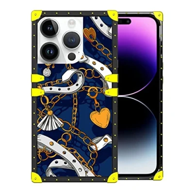 Specially designed for iPhone 14 Pro. ✅ Cute square design with golden chain on the back makes your iPhone 14 Pro more attractive and fashionable. A slightly raised lip protects the screen, fingerprint, camera and flash from scratches and provides complete protection for your iPhone 14 Pro. Precise cut-outs for easy access to all ports, buttons, cameras, speakers and microphones. Unique hybrid design with your favourite modern back with non-slip, flexible TPU.