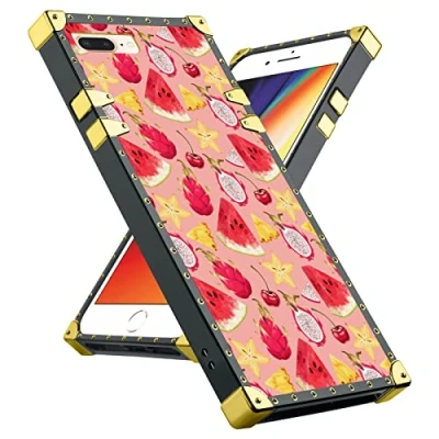 Square Edge Phone Case iPhone 7/8 Plus Fruit Wallpaper Gold Corner Bumper Protection for