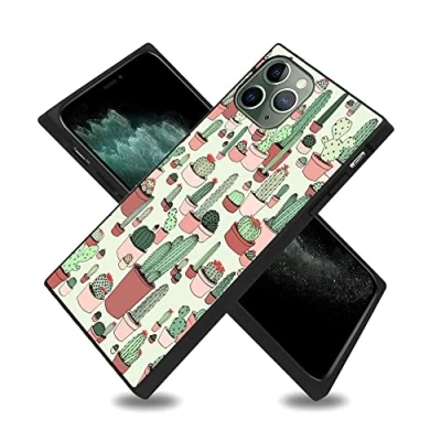 Square Mobile Phone Case iPhone 11 Pro Cactus Pattern Anti Shock Protection Flexible Premium for