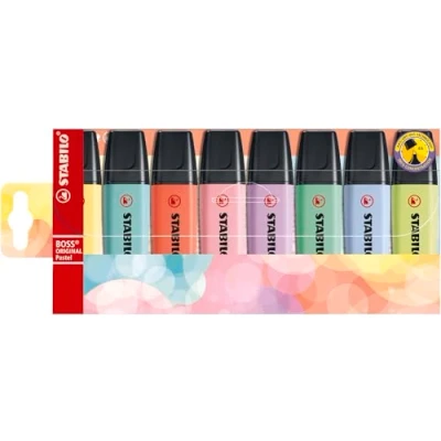 STABILO BOSS ORIGINAL Pastel Highlighter Pack of 8 Assorted Colours