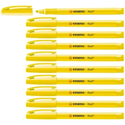 The slim design with pocket clip makes the marker even more attractive. The narrow tip is good for highlighting small print in the office and at school. Start highlighting and mind mapping with the high-quality and luminous STABILO water-based ink. The STABILO Anti-Dry Out Technology allows an incredible 4 hour cap off time. The wedged tip draws broad lines, highlights and underlines important parts of your documents and has line widths of 1mm and 3.5mm.