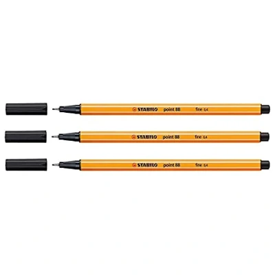 STABILO Point 88 Felt Tip Pens Fine 0.4 mm Black (Pack of 3)