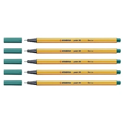 AmazonSTABILO Point 88 Fine Tip 0.4 mm Turquoise Felt tip pen with metal-coated tip for fine and precise writing Ideal for precise lines, graphics, cartography and notes in colour Writing length: 1000 metres Hexagonal shape, vented cap, line width 0.4 mm, available in 30 colours, including 5 neon colours