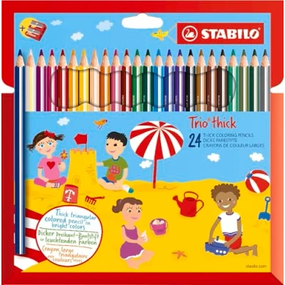 STABILO Triangular Colouring Pencil Trio thick Pack of 24 Assorted Colours with Sharpener
