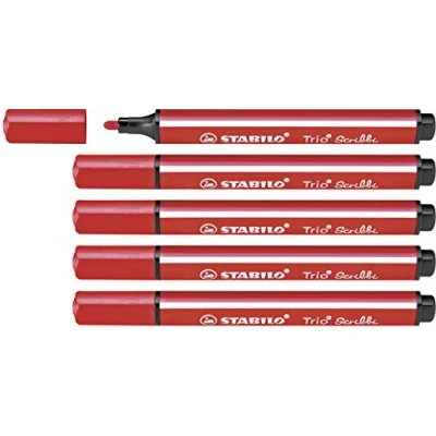 STABILO Triangular Fibre Tip Pen Trio Scribbi Pack of 5 Red