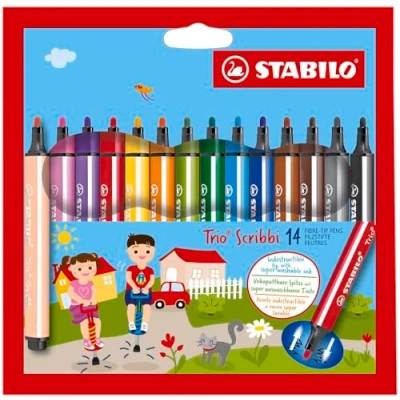 STABILO Trio Scribbi Triangular Fibre Tip Pen Pack of 14 Assorted Colours