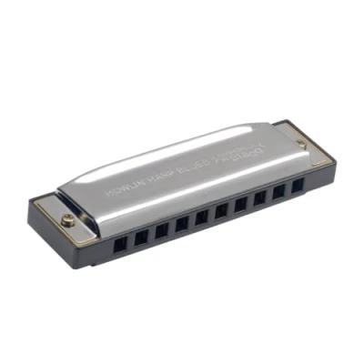 10 hole blues harmonica with 20 tones 0.9mm copper reed plate gives a bright and loud tone Metal outer casing in silver finish Key of e major The perfect companion for playing the blues, as well as folk, country and soul