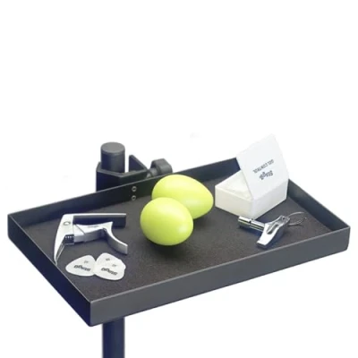 Useful accessory tray that clamps to stands Dimensions: 25 x 15 x 2.5cm Great for percussionists and instrument players Base of tray lined to keep accessories secure Clamps to stands