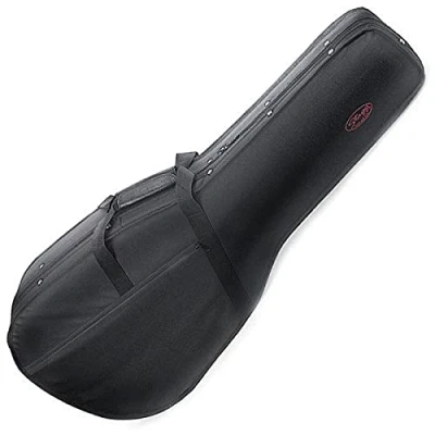 Strong black nylon covering Top and bottom reinforcement wood frames Outer compartment for small items Zippered pouch for music scores Large nylon webbing handle