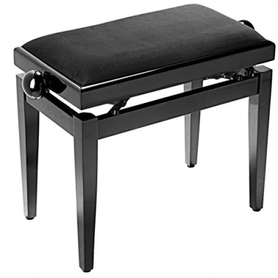 Piano bench with black velvet top Adjustable height: 49-59 cm / 19.3 - 23.23 inches Top dimensions (l x w): 55 cm x 32 cm / 21.6 x 12.6 inches