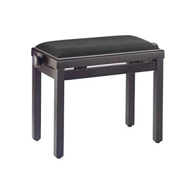 Stagg Piano Bench, Height Adjustable Stool, Rise & Fall, Matt Rosewood Finish with Black Padded Velvet Seat Cushion