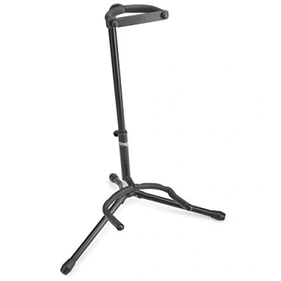 Black guitar stand with folding legs Height range: 65 to 70 cm / 25.6 to 27.6 in Neck fork with safety strip Tripod shaped For ages of 4 and above